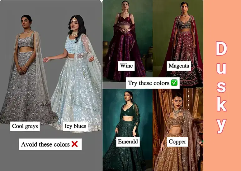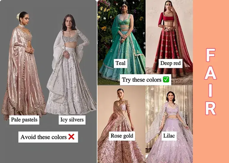 - Skip: Neon anything—too harsh. Pro tip: Layer a coral dupatta over a champagne blouse; the contrast makes your collarbones pop.