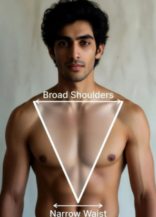 This shape is common among action and romantic leads (think Hrithik Roshan or Salman Khan in their prime). It photographs exceptionally well but can sometimes make the upper body dominate if not balanced properly.